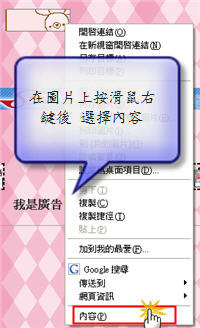 A. 將滑鼠移到圖片上 按右鍵 再選擇內容